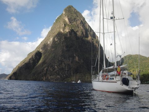 Ya casi a punto de abandonar Santa Lucia fondeamos en los Pitones que forman parte de Parque Natural de la isla y por lo tanto hemos de pagar una tasa. Lugar idílico sin duda y que compartimos con nuestros amigos del Natibou en su catamarán.