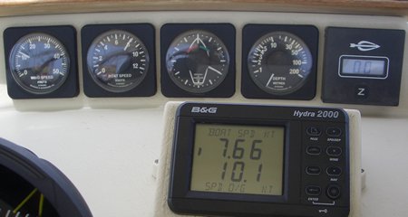 Han transcurrido las primeras 24 horas de navegación hacia Bonaire y hemos recorrido ya las primeras 170 millas. Esta noche los vientos nos han sido muy favorables y también la corriente que como puede observarse en la foto, esta era de mas de dos nudos a favor y a veces tres, con un aparente de 12 nudos.