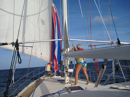 La gente suele preguntarse que hacemos tanto tiempo en el barco, pues una travesía de estas al igual que la del atlántico nos lleva unos 20 días aproximadamente, rodeados de agua un día tras otro. Pues bien, os adjuntamos fotos de algunas de las tareas cotidianas entre las que además se encuentran la lectura, reparaciones y mantenimiento, trimaje de velas, etc. además de nuestros intentos de pesca.