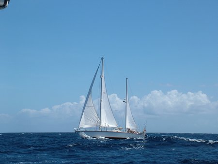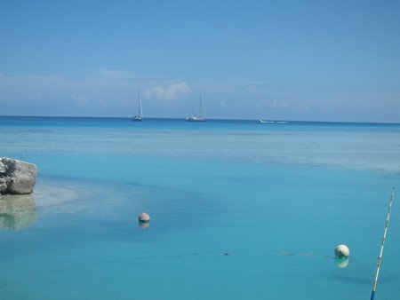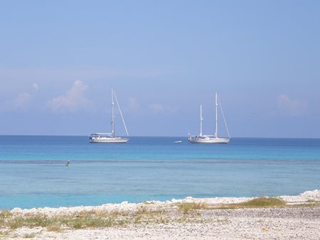 La navegación dentro de la laguna del atolón es placentera, no hay oleaje y el entorno es paradisíaco. No obstante, crea enorme expectación dado que hay numerosos bajos que no están indicados en las cartas náuticas. Esto son, arrecifes de coral que emergen desde el fondo como estalagmitas hasta llegar casi a la superficie. Navegamos varias embarcaciones juntas mientras que la que va en cabeza hace de guía con un miembro de la tripulación subido en una de las crucetas del mástil para observar y localizar los posibles bajos. Así, poco a poco vamos avanzando a lo largo de la laguna hasta llegar al lugar escogido para fondear y pasar unos días.