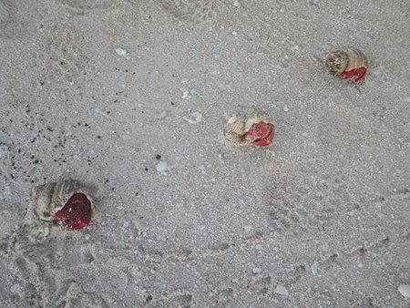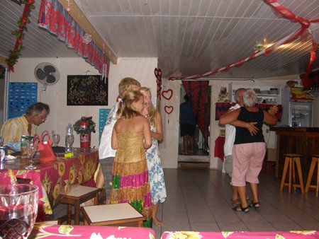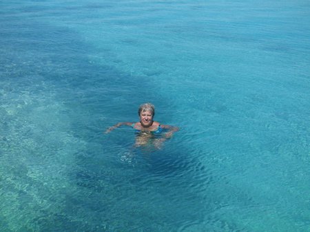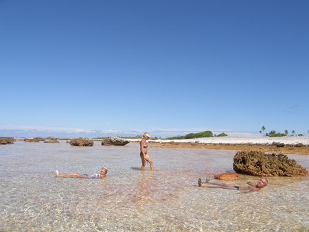 Hoy hemos ido a tierra con la auxiliar y hemos andado por la barrera del arrecife que separa el océano de la laguna. Es una experiencia jamás experimentada anteriormente, caminar en la bajamar por el arrecife con dos o tres palmos de agua. Tiburones pequeños de aleta negra, cantidad de peces de colores, conchas gigantes y cantidad inmensa de coral, blanco, ocre, rubí, turquesa y violeta.