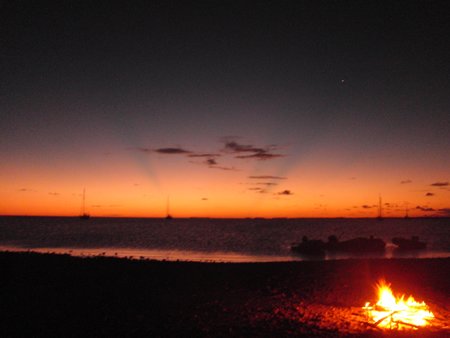Por la noche hemos ido a tierra nuevamente para observar la puesta de sol y hemos encendido una fogata para alimentar los espíritus. Ha sido un final de jornada fascinante bajo la luz de las estrellas.