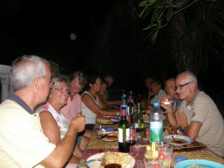 Los habitantes de Poueva son muy agradables con todos nosotros. Uno de los pocos y pequeños restaurantes caseros se brinda a prepararnos una cena amenizada con un karaoke, mientras Pachin y Pachán se marcan unos pasos.