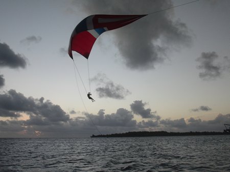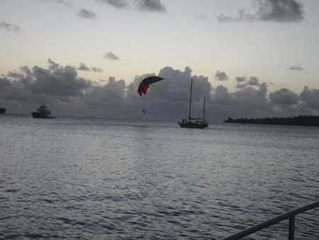 Los hay que saben ingeniárselas para buscarle aplicaciones alternativas al spinaker mientras están fondeados. Diversión con cierto nivel de riesgo aunque divertida. Sobretodo cuando el sujeto cae al agua desde cierta altura.