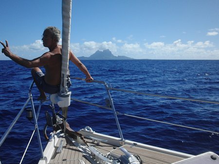 Bora Bora a la vista! – La travesía desde Raiatea hasta Bora Bora ha sido cómoda aunque con ausencia total de viento. Hemos intentado pescar pero de momento los peces se resisten.