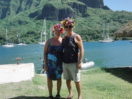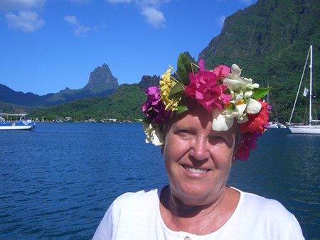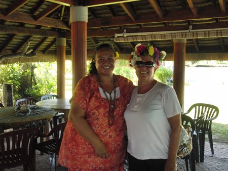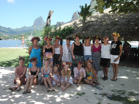 Nuestra llegada a la bahía de Cook ha despertado el interés de algunos lugareños. La dirección del “Club Bali Hail Hotel” ha tenido la cortesía de invitarnos a disfrutar de sus instalaciones, a la vez que nos han obsequiado con una demostración práctica de cómo se confeccionan las coronas de flores con que las mujeres se adornan la cabeza.