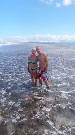 La barrera de coral que forma el arrecife es amplia y su crecimiento se frena justo al llegar a la superficie del agua. Esta fue una de nuestras actividades en la zona, caminar sobre el arrecife y observar los peces que quedan atrapados entre los fragmentos de coral. En la foto de abajo vemos la ubicación del Resort Le Tahaa donde hemos estado fondeados y buceando entre sus aguas.
