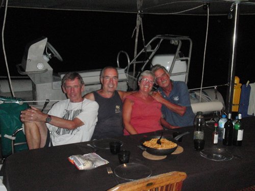 Aquests són companys d’una altra embarcació del ral.li que també tenen problemes de motor i estan a l’espera. Ells van organitzar un sopar a bord d’un catamarà gran d’un col lega del port.