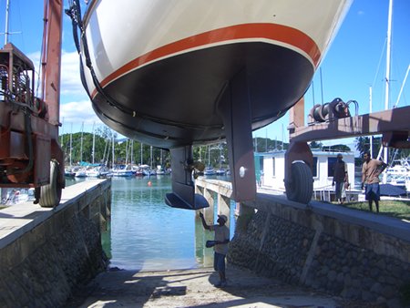 En algunos puertos de la polinesia existen lo que llaman “agujeros para huracanes” para las embarcaciones que pasan grandes temporadas varadas. Consiste básicamente en un pozo donde se ubica la quilla a fin de que la embarcación se asiente mejor en el suelo y de esta manera quede mejor protegida de los ciclones.