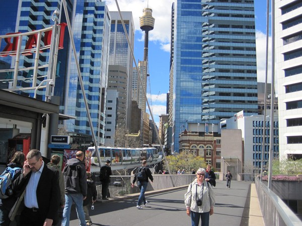 Pero hoy, una vez mas, andando por sus calles, avenidas, parques y bulevares, nos hemos rendido a sus pies y tenemos que aceptar que es una ciudad preciosa. Hemos corroborado nuestras sospechas después de visitar el recinto de Darling Harbour y observar las panorámicas de la ciudad desde la torre de comunicaciones que resulta ser el edificio mas alto de la ciudad, a 260 metros de altura.