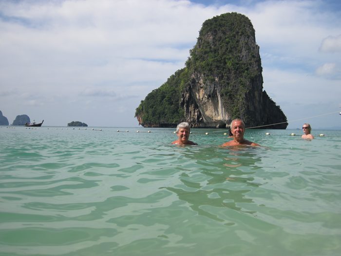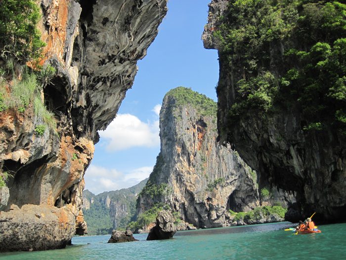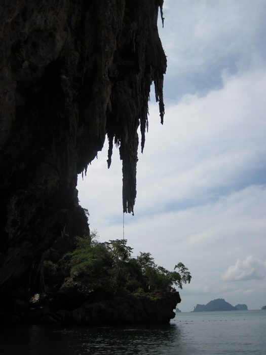 Estamos fondeados en Laem Nang, frente la bahía de Rai Le Beach que nos ofrece una panorámica espectacular con rocas de formas bastante curiosas. Saltamos a la dinghy y nos damos un garbeo de reconocimiento. ¡Ay! ¡qué bonito es esto! Hay como cuevas de piedra caliza con entrantes muy retorcidos.
