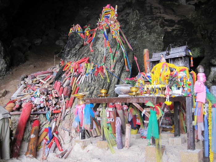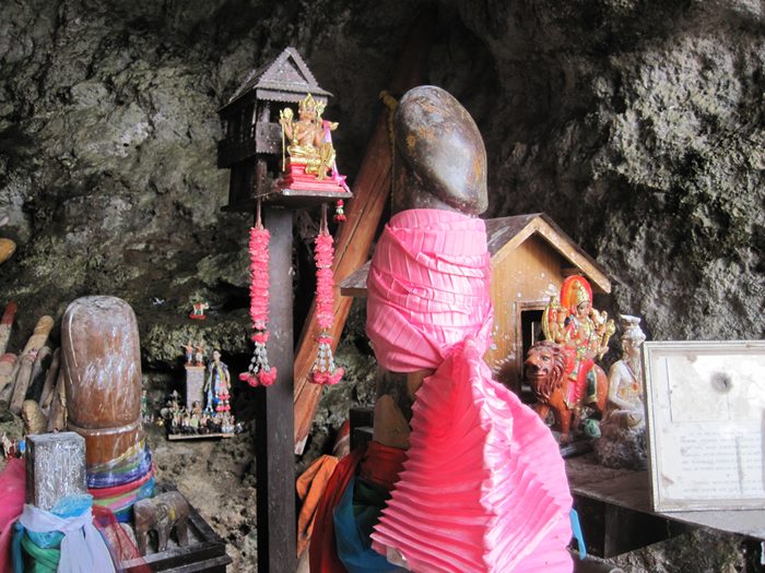 En una de las cuevas en la playa, hay un lugar sagrado dedicado al parecer a un Dios de la fertilidad. Es curioso porque hay un montón de símbolos fálicos de todos los tamaños que suponemos son ofrendas que la gente lleva para que este Dios les ayude a ser más fértiles. Yo creo que hoy por hoy ya es algo más turístico que sagrado, pero bueno, ahí está. Y de paso hay chiringuitos por ahí alrededor vendiendo los falos para las ofrendas (o para lo que cada uno quiera hacer con ellos).