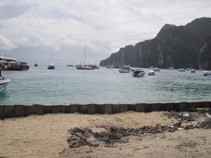 Nos hemos encontrado con uno de los lugares “en teoría”, mas bellos y relajantes que debemos sumar a otros conocidos. Se trata de la más grande de las islas Phi Phi, Se puede llegar a ella desde Phuket, y todos sus visitantes llegan en barco. Phi Phi Don tiene unas playas fabulosas de arena finísima y con un fondo de aguas verdes y cristalinas. También hay muchos lugares donde hacer buceo y submarinismo. Gran parte de la isla es una reserva marítima protegida. El problema está en la sobresaturación del turismo que debería tener un límite. La realidad es que nos hemos encontrado con un entorno muy familiar, Lloret, Playa de Aro, etc..