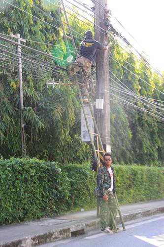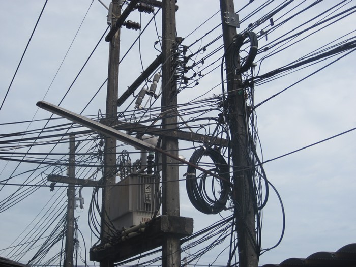 Como puede verse en las fotos de abajo, la seguridad en el trabajo está por encima de todo. En cuanto al rigor sobre el cableado aéreo, la foto se expresa por si sola.