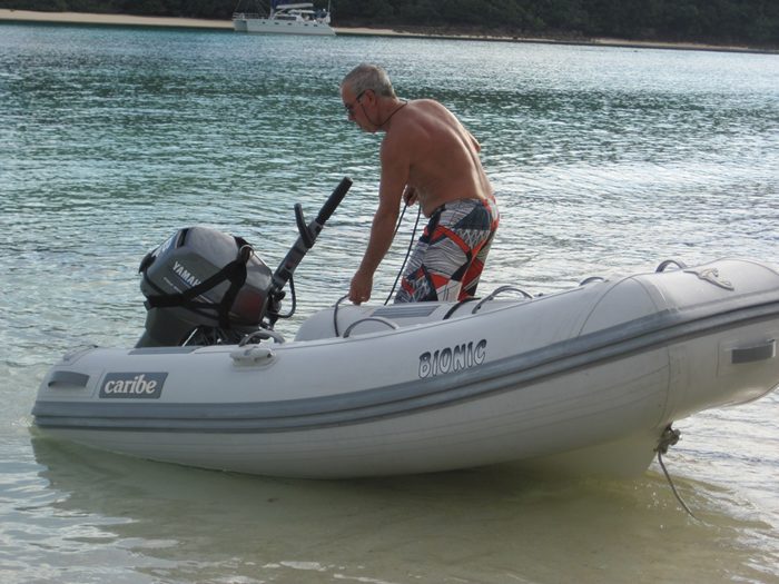La dinghi, nuestra fiel aliada, indispensable para ir a tierra aunque nos supone un gran esfuerzo para bajarla o subirla a bordo, así como, el motor que pesa lo suyo.