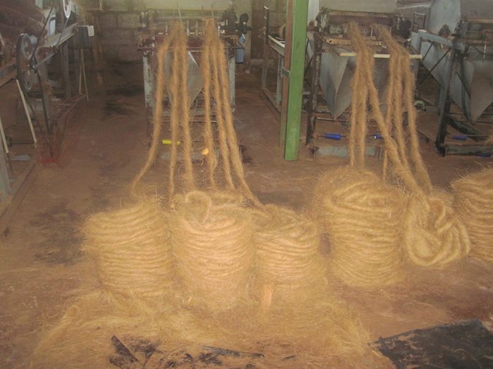 Nos quedamos sorprendidos de ver como aprovechan los cocos. Sabíamos lo de la leche y aceites. También de otros tantos de productos a partir de la cáscara del coco, pero hoy hemos estado en una fábrica donde fabrican cuerdas y colchones con el material que envuelve la cáscara del coco. La verdad es que los colchones no eran muy cómodos, pero claro, es lo que hay y con lo que tienen que convivir estas pobres gentes.
