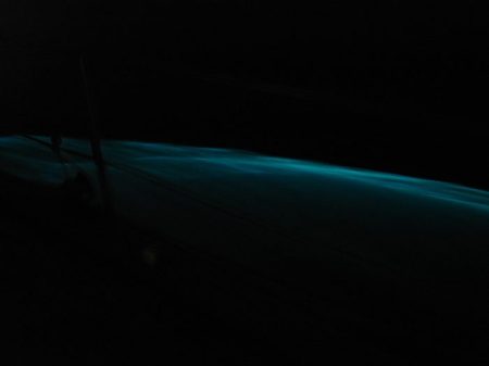En algunos tramos de la travesía y durante la noche nos hemos encontrado con un fenómeno luminiscente en la superficie del agua al ser agitada por el casco de la embarcación y que producía una fluorescencia azulada. En la oscuridad de la noche y bajo un cielo estrellado, este fenómeno era espectacular.