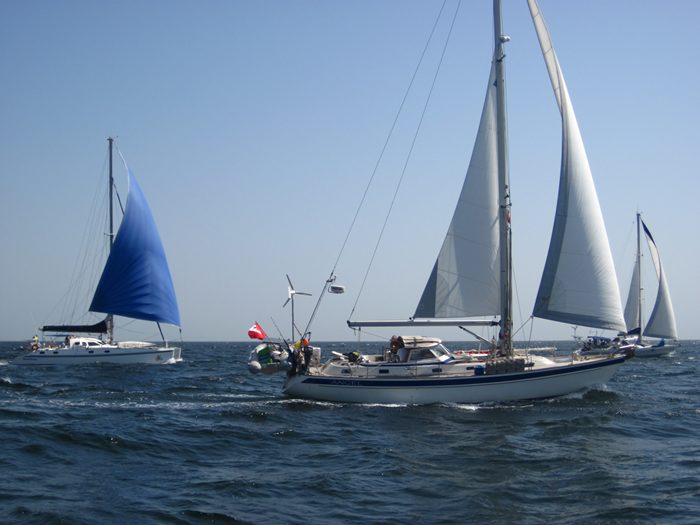 En ocasiones, aun que pocas, tuvimos buenos vientos que nos permitieron disfrutar de la navegación a vela. De los doce días, prácticamente tuvimos el motor en marcha once largos por una ausencia total de viento o bien lo teníamos en contra.
