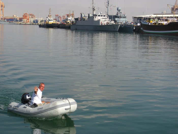 Visión del puerto de Salalah y zona donde estamos fondeados de una forma un tanto peculiar ya que no existe puerto deportivo.