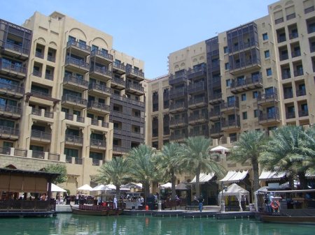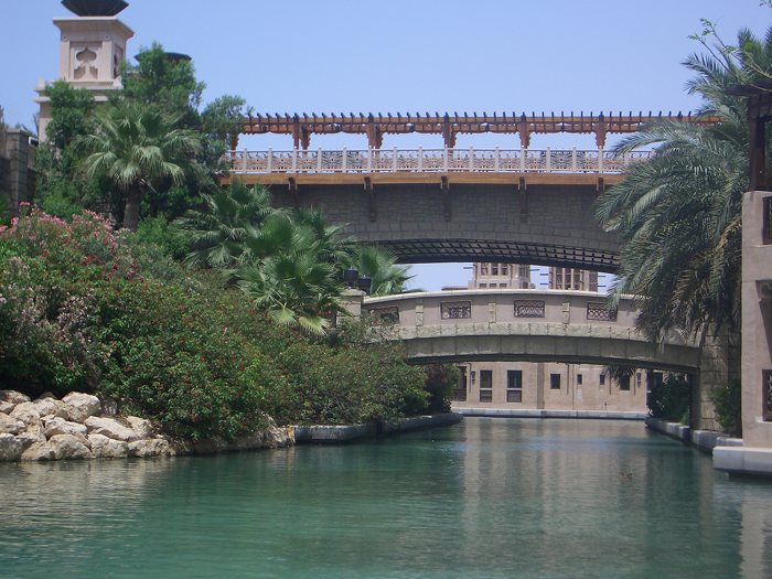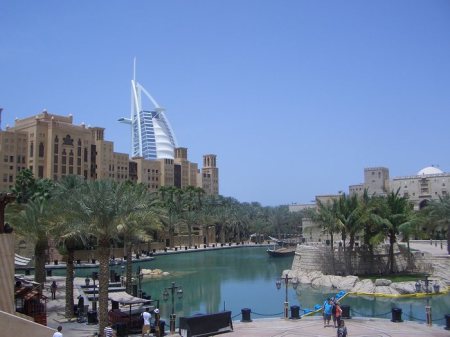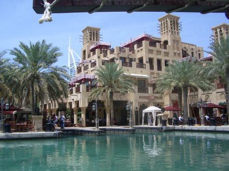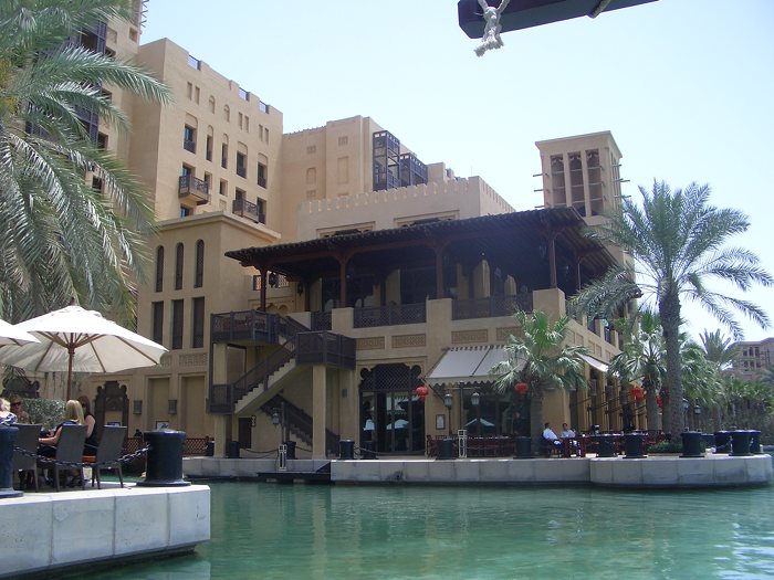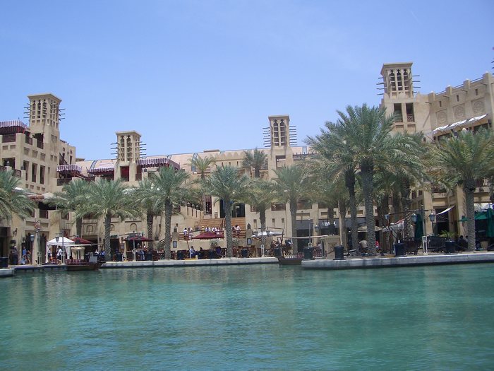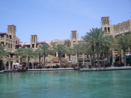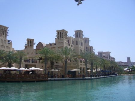 Estamos en una área conocida como Madinat Jumeirah, cerca de la famosa playa de Jumeirah y frente al hotel vela Burj Al Arab. Se trata de un conjunto de edificaciones rodeadas de canales de un agua limpísima y en general todo. En el interior de este conjunto, aparte de casas y apartamentos familiares, hay un zoco, hoteles y restaurantes.