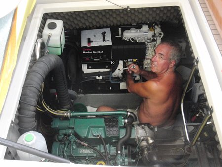 Los amigos empiezan a venir para decirnos adiós y nos brindan sus mejores deseos para este largo viaje. Estos días nos ha visitado nuestro amigo Dr.Eduard Estivill con quien hemos compartido los procedimientos adecuados relacionados con las pautas a seguir para dormir y a la vez descansar, ya que siendo una tripulación de únicamente dos, las travesías del Atlántico y Pacífico de unas 3 y 4 semanas respectivamente , podrían agotarnos con las guardias de la noche.